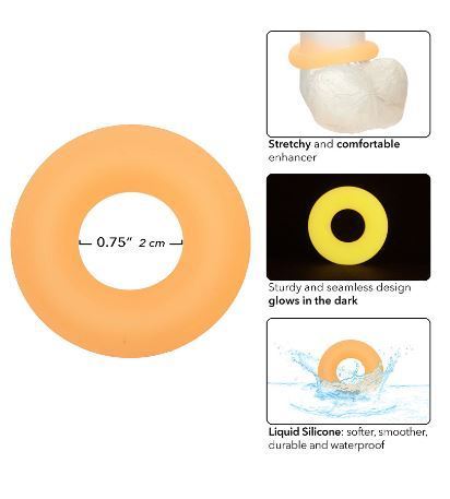 Haluatko pitkittää erektiotasi ja tulemistasi? Nyt voit tehdä sen helposti vaikka pimeässä! Tämä Liquid Silicone penisrengas on venyvä mutta tukeva. Sen materiaali on pehmeää joten sen pito vain lisää nautintoasi. Herkistä ja pitkitä erektiotasi tällä miellyttävällä penisrenkaalla. Se myös hohtaa pimeässä! Halkaisija tällä nautintoa kasvattavalla penisrenkaalla on 2cm.