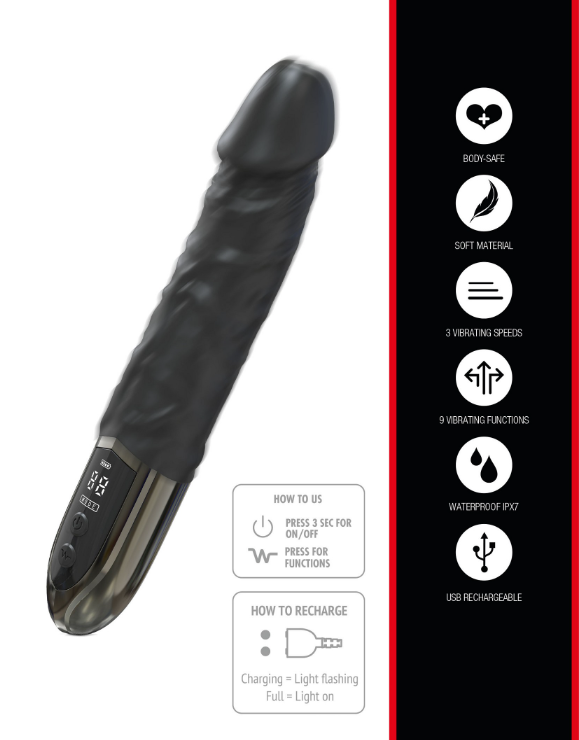 Tajunnan räjäyttävä Power Vibrator 9 värinäohjelmalla ja 3 nopeudella! Power Vibrator on tehokas nautinnollinen ja vahva anaalivibraattori, jota voit käyttää myös vedessä, sillä se on vedenkestävä. Yhdessä kumppanisi kanssa tai yksin, takuulla hyvä lisä arkeesi! Tuotteessa on realistinen suonikas muoto, ja sen materiaali on sileää silikonia. Vaikka tuote on anaalivibraattoriksi tehty, kuka sanoo etteikö sitä voisi muuhunkin käyttää! Käytä tuotteen kanssa reilusti vesipohjaista anaaliliukuvoidetta.