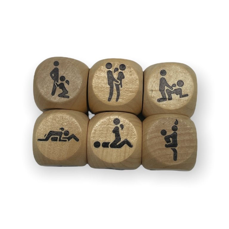 Punainen asentonoppa, jossa yhteensä 6 erilaista seksiasentoa. Heittäkää noppaa ja antakaa sen päättää seuraava asento! Sisältää yhden nopan.