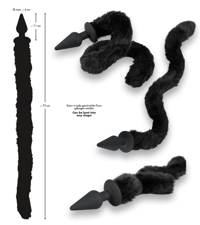 Kartionmallinen anustappi ihastuttavalla pörröisellä hännällä, miau! Häntä viskoosia, pituus noin 62cm. Tappiosa silikonia, pituus 11cm ja halkaisija 4cm.