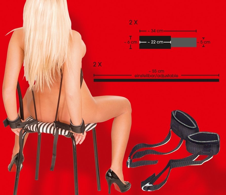 Kaksi pehmustettua rannekahletta nyöreillä. Sopivat myös nilkkoihin. Sido partnerisi tukevasti esim. sängynpäätyyn kiinni.