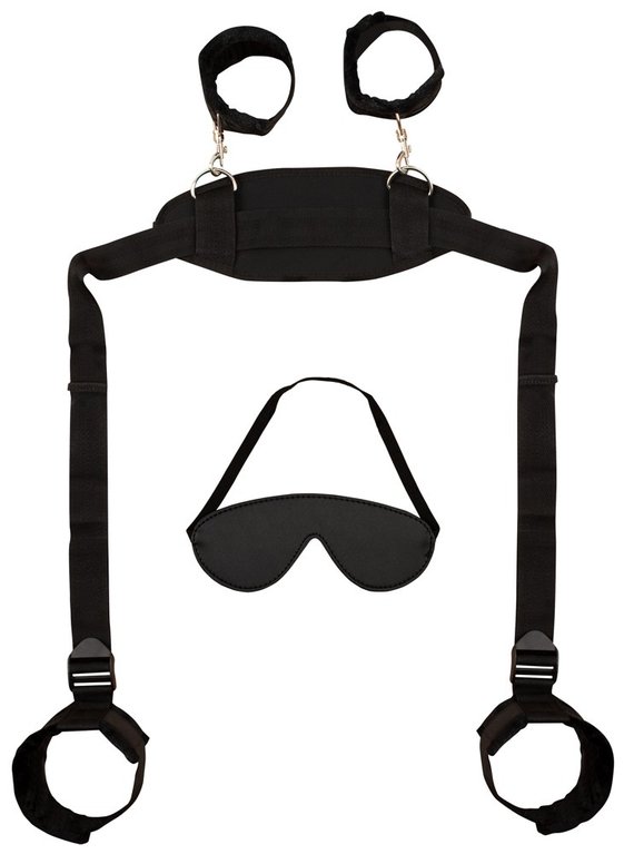 Kokonaisvaltaiseen sidontaan! Tällä kahlesetillä sidot näppärästi nilkat ja ranteet kiinni kaulaa tukena käyttäen. Osat ovat pehmustetut, joten sinun ei tarvitse pelätä epämukavaa tunnetta tai hiertymiä. Kahleet nostavat jalkojasi jolloin intiimialueesi tulee olemaan houkuttelevasti esillä. Osat ovat säädettävissä juuri sinun mittojesi mukaan. Kahleiden kiinnitys pikalukoilla on helppoa ja nopeaa. Mukana saapuu myös ilmainen silmämaski, mikä tekee kokemuksesta entistä jännittävämmän.