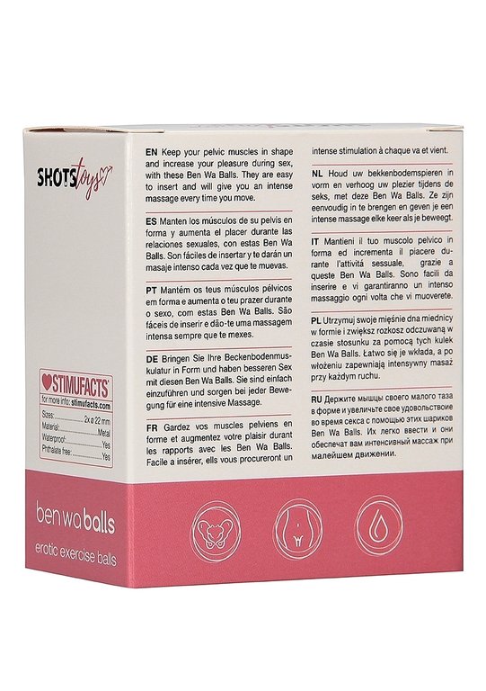 Pidä lantiolihaksesi kunnossa ja lisää nautintoa seksin aikana näiden Ben Wa Balls -pallojen avulla. Ne ovat helppo asettaa paikoilleen, ja ne antavat lantionpohjanlihaksillesi hyväå treeniä, joka kerta kun liikut. Nämä kuulat vaativat jo jonkin verran lihaksien voimaa, sillä pienen kokonsa ansiosta ne tarvitsevat lihasvoimaa pysyäkseen paikoillaan. Voit lisätä vastusta käyttämällä enemmän liukuvoidetta kuulien kanssa.
