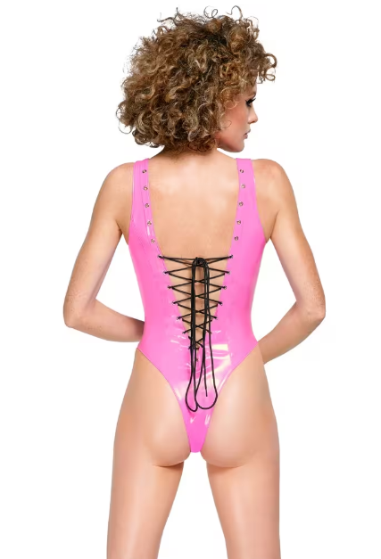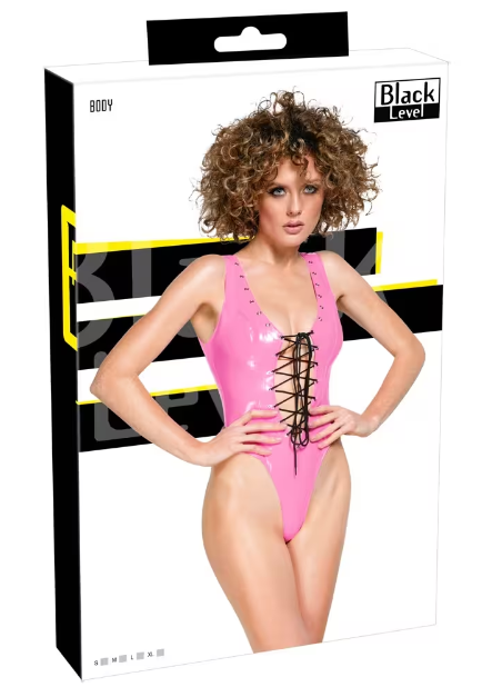 Upea ja seksikäs pinkki vinyyli body nyt sinulle joka haluat tuoda seksikkäät puolesi esiin herkullisella pinkillä värillä! Tämä body ei jätä mitään mielikuvituksen varaan sen kauniilla nyöritetyllä etuosalla. Voit myös nyörittää narun ylemmäs jos haluat, kuva on vain esimerkki. Bodyn materiaali on joustavaa pinkkiä vinyyliä joten se mukautuu hyvin kehosi muotoihin.