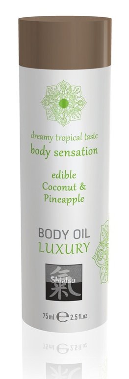Kaikkia aistejasi hivelevä hierontaöljy. Kolme ihanaa vaihtoehtoa; vanilja, mansikka&punapippuri tai kookos-ananas. Riittoisa 75ml pakkauskoko. Soveltuu erityisesti oraalisiin nautintoihin.