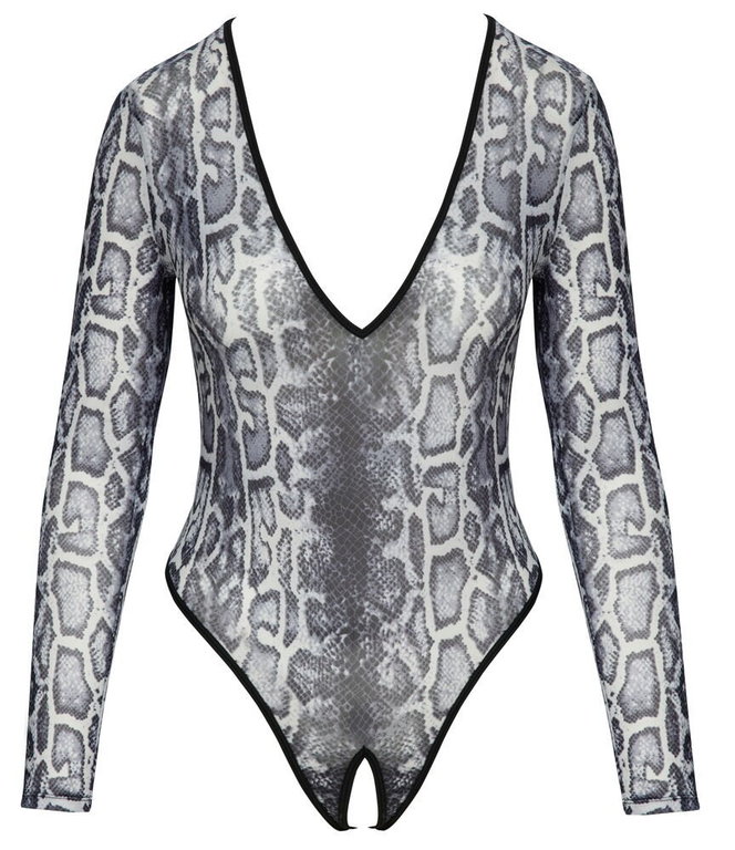 Joustava body käärmeennahkakuviolla. Haaroista avonainen, sinun ei tarvitse riisua tätä laisinkaan! Pitkät hihat ja joustava kangas tekevät tästä vastustamattoman. Voit käyttää tätä myös arkena yhdistettynä lempialaosasi kanssa!