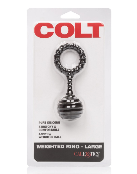COLT Weighted Ring Large on silikoninen penisrengas painolla. Monipuolinen rengas painolla sopii kaikille tasosta riippumatta ja niille, jotka haluavat pidentää penistä. Rengasta voidaan käyttää vaivattomasti lisäämään peniksen pituutta tai lisäämään verenkiertoa ja lämpöä peniksessä. Hypoallergeeninen materiaali sopii täydellisesti vesipohjaisen liukastusaineen kanssa.