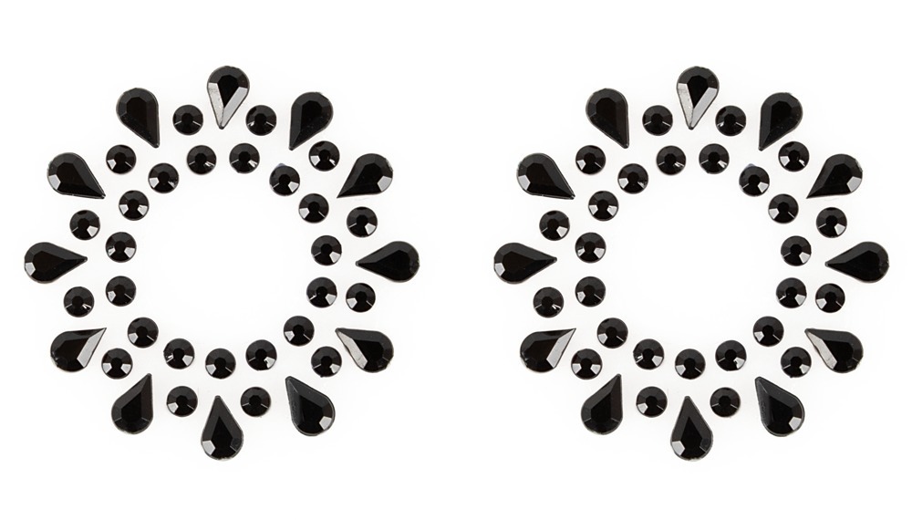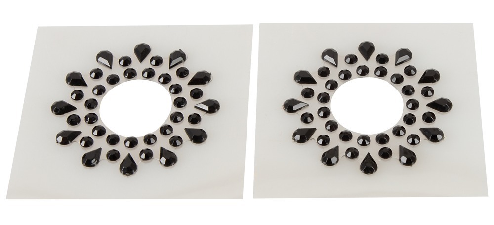 Upeat nännitarrat koristavat nännejäsi niin arkena, juhlissa kuin makuuhuoneen puolella. Pakkaus sisältää 2 nännitarraa, ne ovat koristeltu mustilla akryylikivillä ja kiinnittyvät nännien ympärille täydellisesti. Liimapinta on ihoystävällinen.