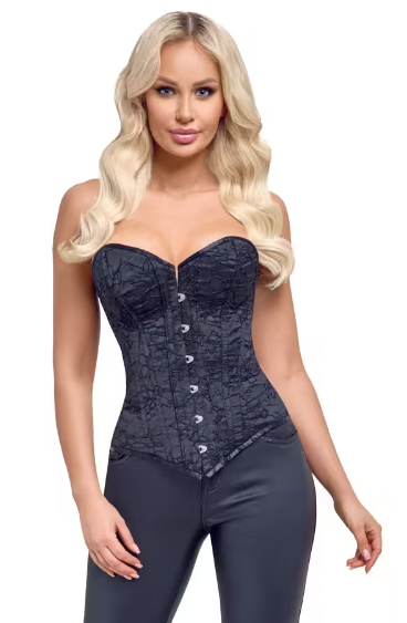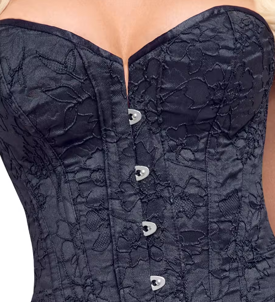 Kaunis ja elegantti kukkakoristeltu korsetti. Se on tehty pehmeästä joustavasta materiaalista jota on miellyttävä pitää päällä. Tämä upea asuste tuo esiin kauniit muotosi ja antaa tiimalasimaisen muodon kehollesi. Korsetti suljetaan edestä ja kiristetään takaa. Älä kiristä niin paljoa että hengittäminen on hankalaa!