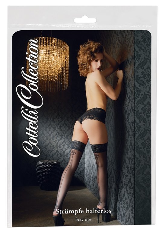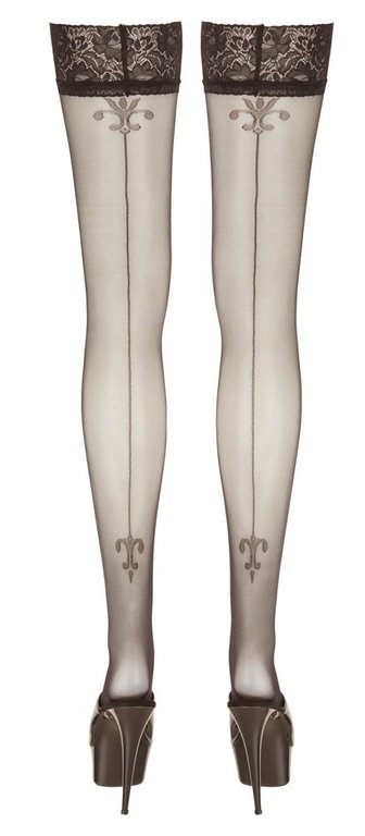 Upeat stay up- sukat kauniilla kuvioinnilla. Leveä pitsikaitale silikoninauhalla takaa sukkien paikallaanpysymisen. Neljä kokoa, valitse omasi. Materiaali 91% polyamidi, 9% elastaani.