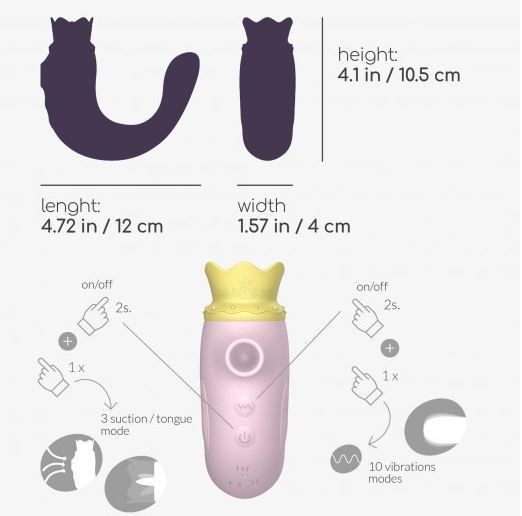 Muistatko sen ajan, jolloin halusit olla seikkailunhaluinen merenneito? Hiri on uinut maapallon halki vain päästäkseen luoksesi ja tarjotakseen sinulle tarinoita syvältä merenpohjasta. Tämä nautinnollisen muotoinen stimulaattori on valtameren kuningas ja se on valmis kylpemään sinun kanssasi rikkauksineen! Nauti kielen- ja imutilan välillä ja viimeistele nautinto työntämällä häntä syvälle sisääsi nauttien samalla 10 erilaisesta värinäohjelmasta.