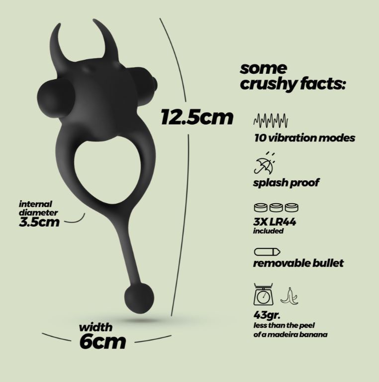 10 värinäohjelman voimin stimuloiva penisrengas erityisesti pariskunnille. Värinät stimuloivat kumppanisi herkkiä osia yhdynnän aikana samalla kun renkaan ansiosta erektiosi on muhkeampi ja kestää pidempään. Renkaan alapäässä oleva pallo hyväilee kiveksiä liikkeiden mukana. Irrotettava värinäkuula toimii 3 x LR44 paristoilla (sisältyvät pakkaukseen).
