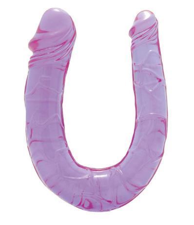 Upean kimmoisa violetti tupladildo jellymäisestä ja taipuisasta materiaalista. Tämän dildon päät ovat erikokoisia, joten voit vaikka aloitella pienemmällä ja jatkaa suuremmalla. Sauva palauttaa aina käyrämäisen asentonsa, ja sitä voikin käyttää mainiosti myös vaginaan ja anukseen samanaikaisesti. Vain mielikuvitus on rajana! Dildo on helppo pestä ja puhdistaa.