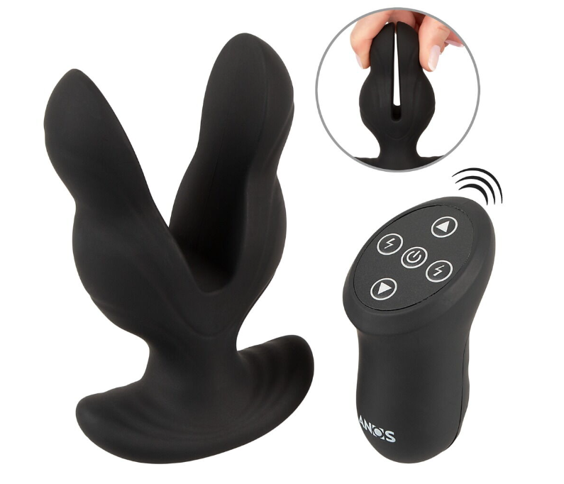 E-Stim kaksihaarainen anaalitappi! Haarat ovat joustavia joten lelu on silti helppo asettaa sisään, se vain luo nautinnollista venytystä kun se on asetettu paikoilleen. Lelu on pehmeää ja taipuisaa silikonia joten sisäänlaitto on miellyttävää kaikilta osin. Mutta tässä tapissa on muutakin kivaa. Sähköistä ja värisevää sellaista. Tämä anaalitappi omaa 8 värinäasetusta ja 8 sähköstimulaatio asetusta. Nauti siis tavallisista tai kihelmöivistä värinöistä sisälläsi. Sähköstimulaatio on turvallista ja sitä ei saa niin suureksi että se aiheuttaisi vahinkoa keholle! Voit kontrolloida värinöitä ja sähköstimulaatiota kauko-ohjaimen avulla jota voit käyttää jopa 10 metrin etäisyydellä!
