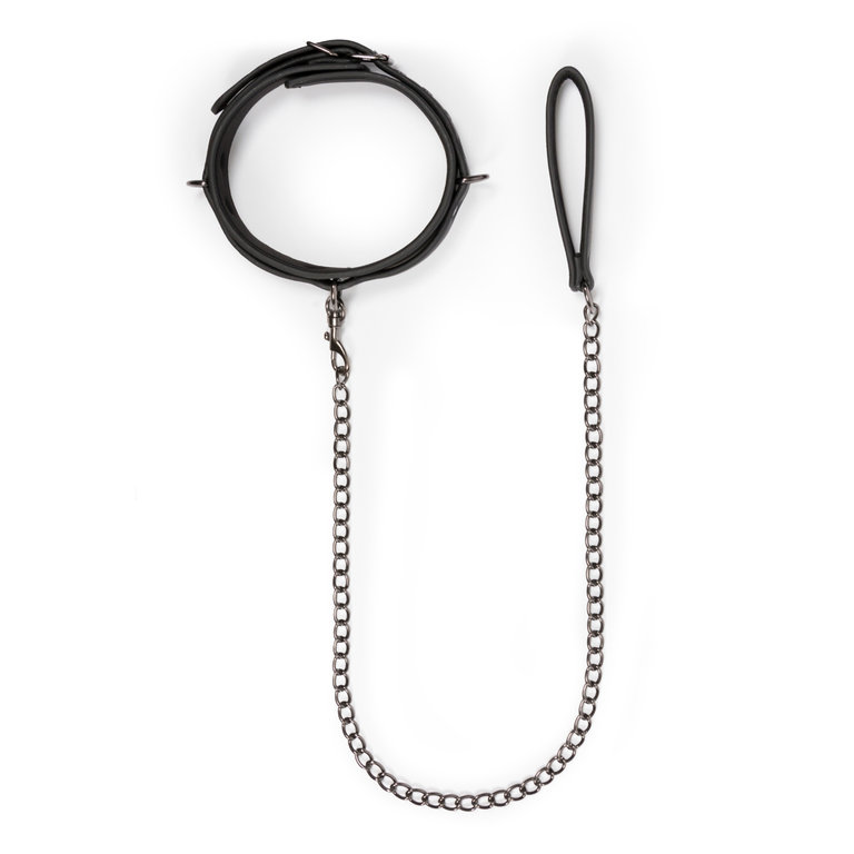 Pidä orjasi aina käden ulottuvilla! Tässä tyylikäs tekonahkainen panta hihnalla rakkaasi kurissa pitämiseen. Pantaa voi säätää 40cm-54cm välillä, joten se sopii kaikenlaisiin kauloihin. Panta on valmistettu kestävästä materiaalista, kestää rajummatkin leikit. Sisäpuoli on pehmeää materiaalia. Talutushihnan saa irrotettua pannasta.