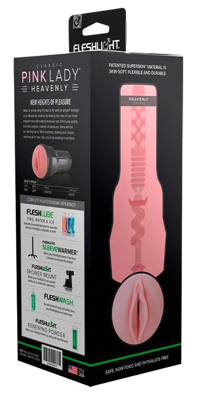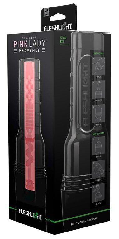 Fleshlight Pink lady huippusuositulla Heavenly- tekstuurilla. Tuttu ja turvallinen Fleshlightin ulkomuoto realistisella vaginasisäänkäynnillä. Monipuoliset, toinen toistaan kiihottavammat juomut ja nystyt hyväilevät penistä ennenkokemattomalla tavalla ja superpehmeä, aidon ihon kaltainen materiaali tuo autenttisen vivahteen runkkutuokioon. Insertti on helppo irrottaa puhdistusta varten.