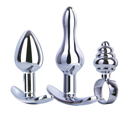 Kolme eri mallista ruostumattomasta teräksestä tehtyä anaalitappia. Nautinnolliset muotoilut ja laadukas materiaali tekevät näistä tapeista ikuiset nautinnolliset ystäväsi. Tappien pohjat ovat koukkumaiset jotka tekevät niiden liikuttelusta ja pitämisestä helppoa.