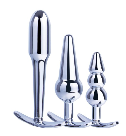 Kolme eri mallista ruostumattomasta teräksestä tehtyä anaalitappia. Nautinnolliset muotoilut ja laadukas materiaali tekevät näistä tapeista ikuiset nautinnolliset ystäväsi. Tappien pohjat ovat koukkumaiset jotka tekevät niiden liikuttelusta ja pitämisestä helppoa.