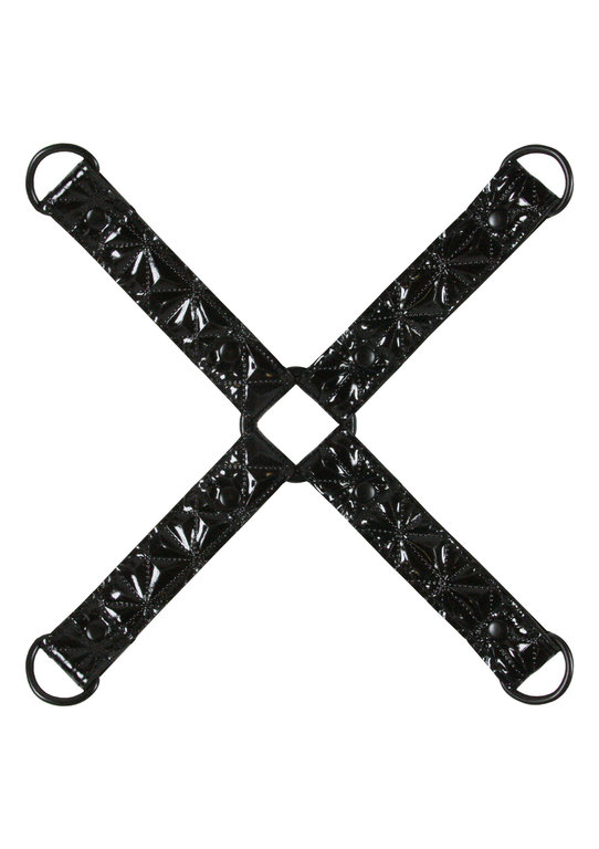 Pistä subisi kunnolla nippuun! Hogtie on loistava sitomisväline bdsm-leikkeihin. Tuotteessa ei ole kahleita mukana, mutta siinä on lenkit joihin ne saa kiinnitettyä. Kaksi lenkkiä ranteiden kahlitsemiseen ja kaksi nilkoille. Valmistettu laadukkaasta, kestävästä materiaalista.