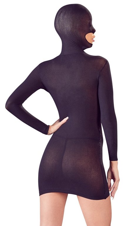 Läpikuultavasta kankaasta valmisetettu mysteerimekko. Mekko jättää suun ja rinnat avoimiksi. Yksi koko S-L