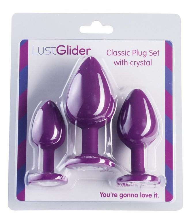 Setti sisältää kolme mukavan tuntuista plugia. Plugit on silikoonisia ja päässä oleva stoppari on koristeltu kivellä.
