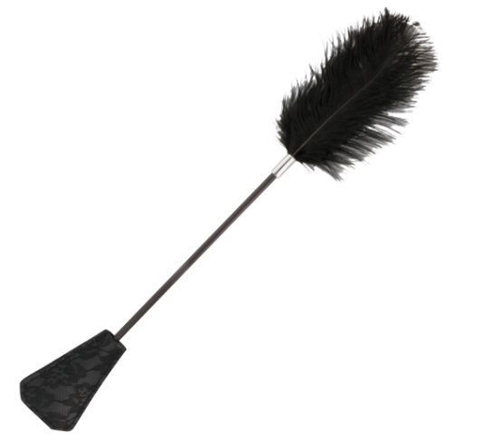 Kaksi yhdessä seksikkäässä raipassa. Toisessa päässä on kutitin jolla voit herkistää parisi ihoa hellästi liikuttelemalla höyhentä siinä ja sitten käyttää toisen puolen läimäytintä antamalla napsakan näpäytyksen.