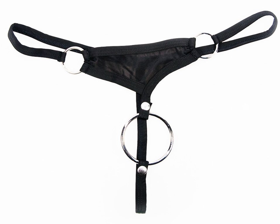 Seksikkäin näky ikinä! Niukkaakin niukemmat stringit, joissa etumuksessa irrotettava penisrengas. Pehmeää, joustavaa mikrokuitua ja rengas metallia. Renkaan halk. 5cm.
