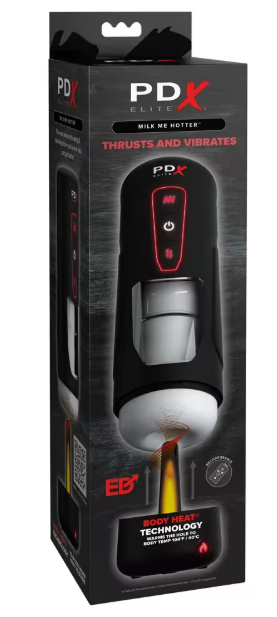PDX Eliten Vibrating Warming Masturbator Milk Me Hotter on kätevässä ja huomaamattomassa kotelossa, jonka suojakannessa on lämpösauva. Siinä on voimakaaat värinät ja intensiivinen hierontatoiminto. Siinä on myös lämmitystoiminto napin painalluksella, joka lämmittää masturbaattorin nopeasti kuin oikean kehon lämpötilaksi.