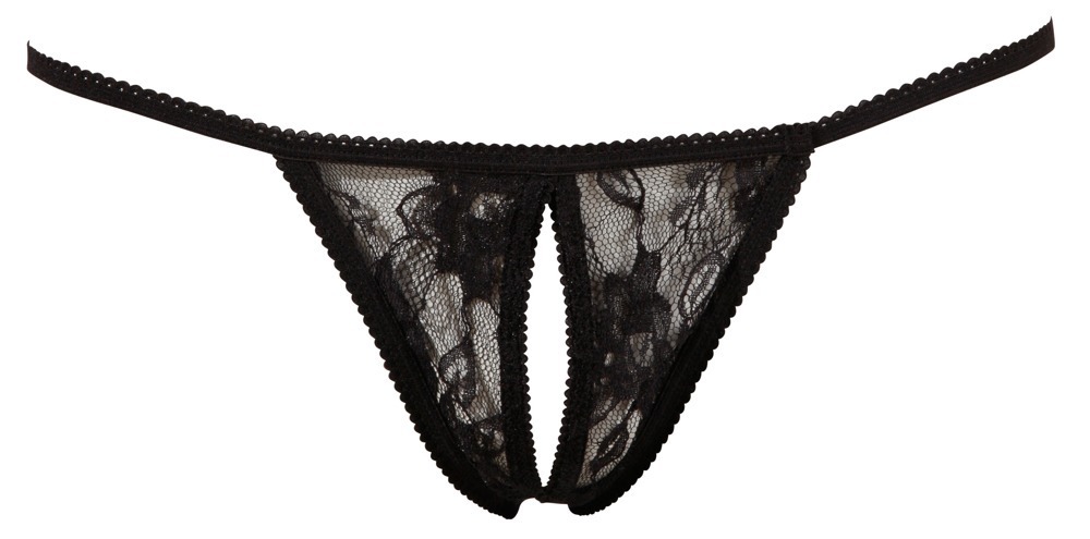 Seksikkäät mustat ja pitsiset avostringit. Näitä sinun ei tarvitse edes riisua kesken puuhien sillä ne ovat avoimet haarasta. Yksi koko S-L.