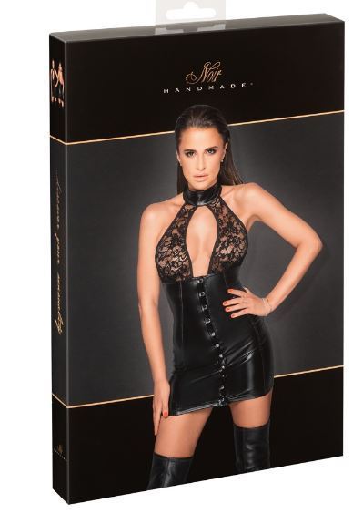Upea kapeneva wetlook minimekko, joka on viettelevän tyköistuva. Etumuksen verkkomateriaali paljastaa eroottisesti rintaa, eikä partnerisi voi vastustaa sinua. Materiaali 76% polyesteriä, 24% elastaania, polymeeripinnoite; pitsi 90% polyamidia, 10% elastaania.