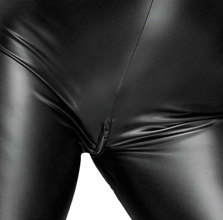 Tyylikäs mattamusta wetlook-jumpsuit! Sopii niin arkeen kuin juhlaankin. Takaa avonainen selkämys. Materiaali on venyvää ja erittäin miellyttävän tuntuista päällä. Haarovälissä kaksisuuntainen vetoketju, joten vaatetta ei tarvitse edes riisua yhdynnän ajaksi! Jumpsuit mukailee vartalosi muotoja ja tuo niistä parhaat puolet hyvin esille. Materiaali 80% polyester, 20% spandex.