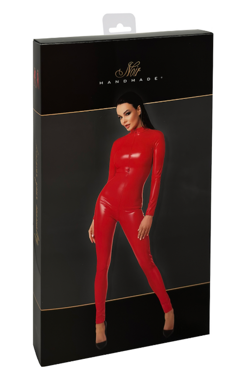 Upea vartaloasi mukaileva overall jumpsuit täyspitkillä hihoilla ja lahkeilla sekä herkullisen punaisella värillä. Joustava, mattapintainen ja laadukas materiaali. Kolmesuuntainen vetoketju ulottuu aina kauluksesta takapuolelle asti. Tätä jumpsuittia ei siis tarvitse edes riisua kokonaan. Sopii täydellisesti myös näyttäväksi asuksi esim. baariin.