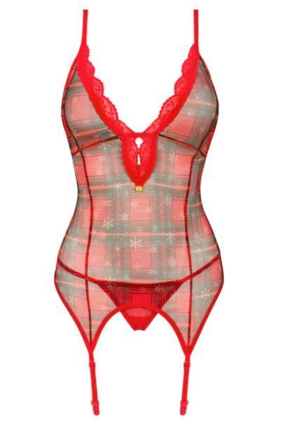 Jouluinen fiilis ja haluat tuoda jotain seksikästä tähän ihanaan juhlaan? Tässä se on! Obsessive Jollymore Korsetti on kauniista jouluisesta kankaasta tehty seksikäs alusasu. Mikäs sen juhlavampaa ja seksikästä fiilistä tuo kuin tämä kaunis korsetti! Mukana tulee myös tyyliin sopivat tangat. Valitse kokosi ja hemmottele itseäsi jouluksi, tai miksei vaikka ihan muutenvaan.
