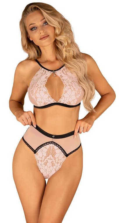 Herkkä ja todella kaunis alusasusetti. Täynnä upeita yksityiskohtia, vastustamaton yhdistelmä pitsiä ja kangasta. Säädettävät nyörit.