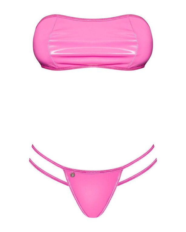 Nam, herkullisen vaaleanpunaisen värinen alusasusetti! Olkaimeton toppi ja niukat alushousut. Kiiltävä pinta.