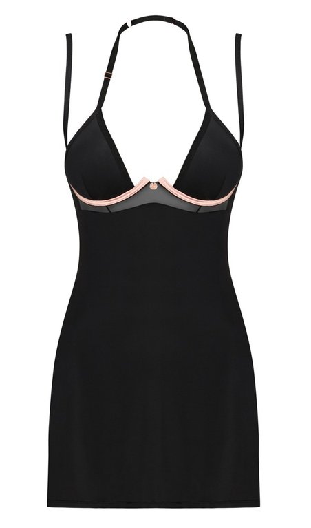 Kaunis, lantiotasi mukaileva babydoll-mekko ja yhteensopivat tangat. Mekko korostaa rintojasi näyttävästi. Kangas tuntuu ihanan pehmeältä ja joustavalta.