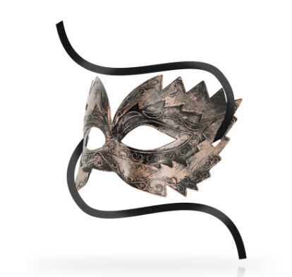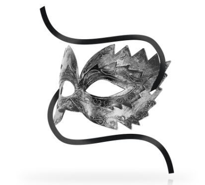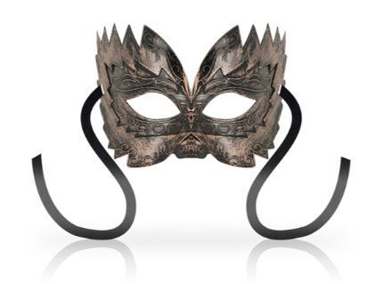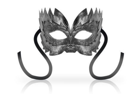 Jäykästä, metallia kuvastavasta materiaalista tehty upea maski tuomaan mysteerisyyttä ja sensuaalisuutta makuuhuoneeseen tai bileisiin. Kauniit kiemuiraiset yksityiskohdat ovat ihana lisä tälle jo upealle maskille. Maskin voi sitoa omalle kireydelleen sen kahdesta sivuilta tulevasta nauhasta.