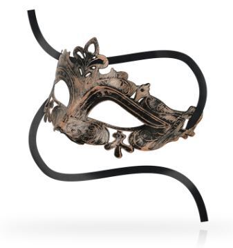 Kauniilla yksityiskohdilla koristeltu venetiala tyylinen kasvonaamio. Upea metallin hohto ja jäykkä materiaali ovat vain lisäkiva tähän jo valmiiksi kauniiseen naamioon. Naamiot tuovat mysteerisyyttä ja eleganssia asuusi tai ihan sellaisenaan makuuhuoneeseen. Naamio on helppo kiinnittää sen kahdesta samettimaisesta nauhasta.