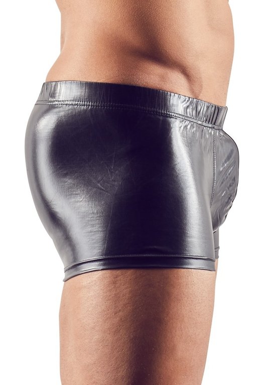Osaatko pitää salaisuuden? Se löytyy housuistasi. Nämä seksikkäät alushousut kätkevät sisäänsä penisrenkaan. Renkaan halkaisija n. 5cm. Housut on valmistettu joustavasta wet-look -kankaasta.