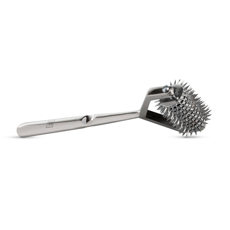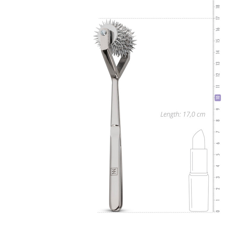 10 samassa rivissä pyörivää piikkipyörää. Tällä tuotteella voit herkistää, stimuloida ja jopa satuttaa toista laajemmalta ihoalueelta. Paina kevyesti tai kovempaa ja pyöritä rullaa iholla. Suosittelemme sitomaan vastapuolen silmät jotta tuntoaisti herkistyy äärimmilleen. Todella laadukas tuote, valmistettu ruostumattomasta teräksestä.