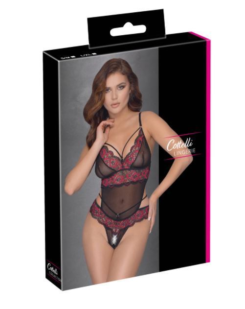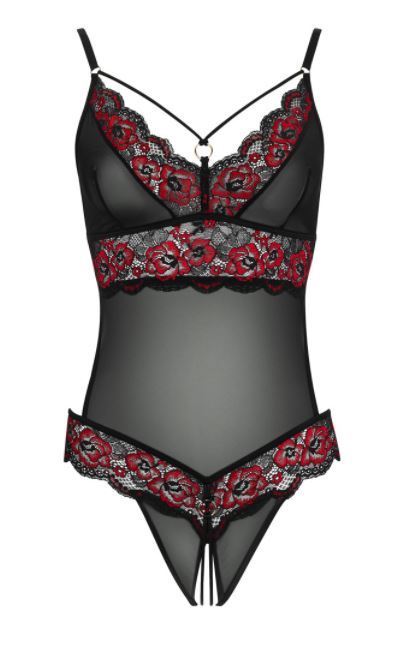 Seksikäs crotchless body, joustavaa pitsimateriaalia. Upeat kukkaiset yksityiskohdat. Säädettävät olkaimet. Takaa avonainen. Saatavana kahta eri kokoa. Materiaali 90% polyamidia, 10% elastaani.