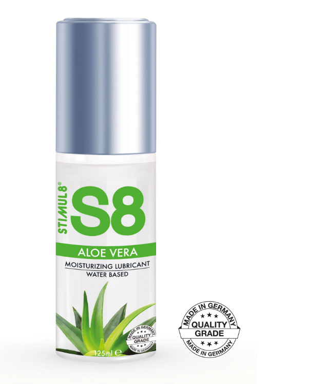 Stimul8 Aloe Vera Vesipohjainen liukuvoide, kosteuttaa ja liukastaa tehokkaasti! Luonnollisia ainesosia, pitkäkestoinen liukuvoide, kosteuttaa ihoa. Tuote koko 125ml.