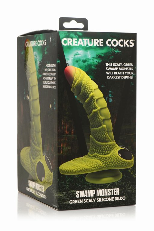 Nauti fantasia leikeistäsi Creature Cocksin fantasialeluilla! Tämä Swamp Monster on matkustanut kauas toteuttaakseen fantasiasi! Dildon varsi on pitkä, kaareva ja suomuinen, joten se antaa aivan uudenlaista tuntumaa. Anna Swamp Mosterin ja hänen suomukkaan peniksen tutkia syvimpiä ja synkimpiä fantasioitasi. Dildon pohjassa on voimakas imukuppi, jonka voit asettaa lähes mille tahansa pinnalle. Dildo toimii myös useimpien strap-valjaitten kanssa. Dildo on valmistettu korkealaatuisesta ja pehmeästä silikonista, joten käytäthän sen kanssa ainoastaan vesipohjaista liukuvoidetta.
