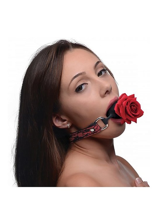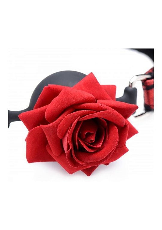 Kenties ruusu joka kukkii suussasi? Silicone Ball Gag with Rose sisältää silikonisen suupallon jonka päässä on kukkiva ruusu. Säädettävä hihna takaa täydellisen istuvuuden. Silikonipallo on silkkisensileä ja turvallinen käyttää. Pallon sisällä on reikiä, jotka helpottavat hengittämistä leikin aikana. Metallisoljet on valmistettu nikkelittömästä metallista, kun taas säädettävä hihna on valmistettu vartaloturvallisesta PU-materiaalista.