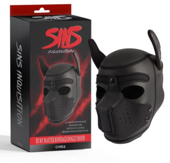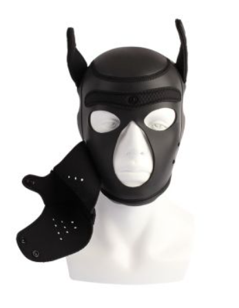 Kuka on hyvä koira? Sinäkö? Vai oletko paha koira? Tällä Doggy hupulla voit olla minkälainen koira tahansa. Se sopii täydellisesti puppy leikkeihin olivat ne sitten seksuaalisia tai ihan kasuaaleja leikkejä. Huppu on tehty mustasta neopreneenistä ja esimerkiksi sen kuonon voi irroittaa, sillä se on kiinnitetty neppareilla. Hupussa on silmille omat reiät, sekä kuonon alla tehty myös reikä nenän ja suun alueelle. Voit myös päästää kielesi ulos tai ottaa herkkuja ilman että kuonoa tarvitsee irroittaa.