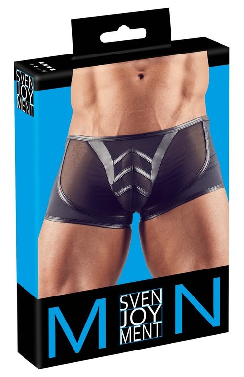 No niin, nyt löytyi alkkarit, joissa naapurin vanha Jörkkakin näyttää adonikselta. Kerrassaan nerokas yhdistelmä läpikuultavaa verkkomateriaalia ja seksikästä wetlookia. Strategisesti sijoitellut kuvioinnit etumuksessa korostavat pakettia varsin näyttävästi ja takapuolella taas pakarat näyttävät täydellisen pyöreiltä taidokkaasti sijoitetun sauman ansiosta. Mitäpä sitä muuta mies tarvitsee, uudet superseksikkäät alkkarit jalkaan vaan ja mielitietty on mielissään. Materiaali miellyttävästi joustava 92% polyesteri, 8% elastaani.
