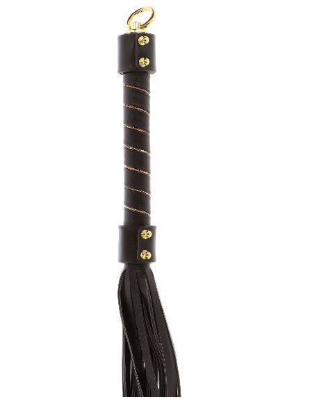 Kaunis ja laadukas hapsupiiska mikä on myös nautinnollisen näköinen! Upeat kultaiset yksityiskohdat menevät kahvaa pitkin ylös ja sen päässä on kultaiset nastat sekä rengas koristamassa tätä jo valmiiksi upeaa piiskaa. PU nahka tuntuu nautinnolliselta iholla ja voit kontrolloida kuinka kovia iskuja annat, tai antaudut jonkun toisen kontrollille. Kahvasta on miellyttävä pitää kiinni ja se näyttää hyvältä kenen käsissä tahansa.