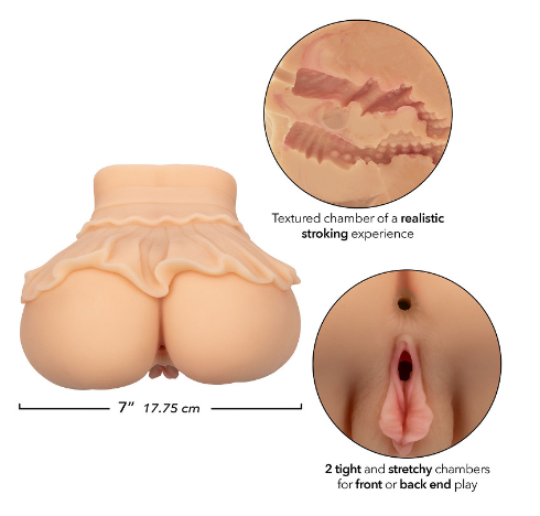 Haluatko nautintoa jonka voi helposti ottaa mukaan? Cheap Thrills The Peep Show Girl on näppärän kokoinen, mutta aidon tuntuinen masturbaattori. Siinä on kaksi juovutettua ja nypytettyä tunnelia, vagina ja anus, jotka luovat nautinnollisia stimulaatioita joka liikkeellä. Söpöllä hameella koristeltu masturbaattori on silkin pehmeää silikonia eikä vain näytä aidolta, mutta tuntuu siltä myös!
