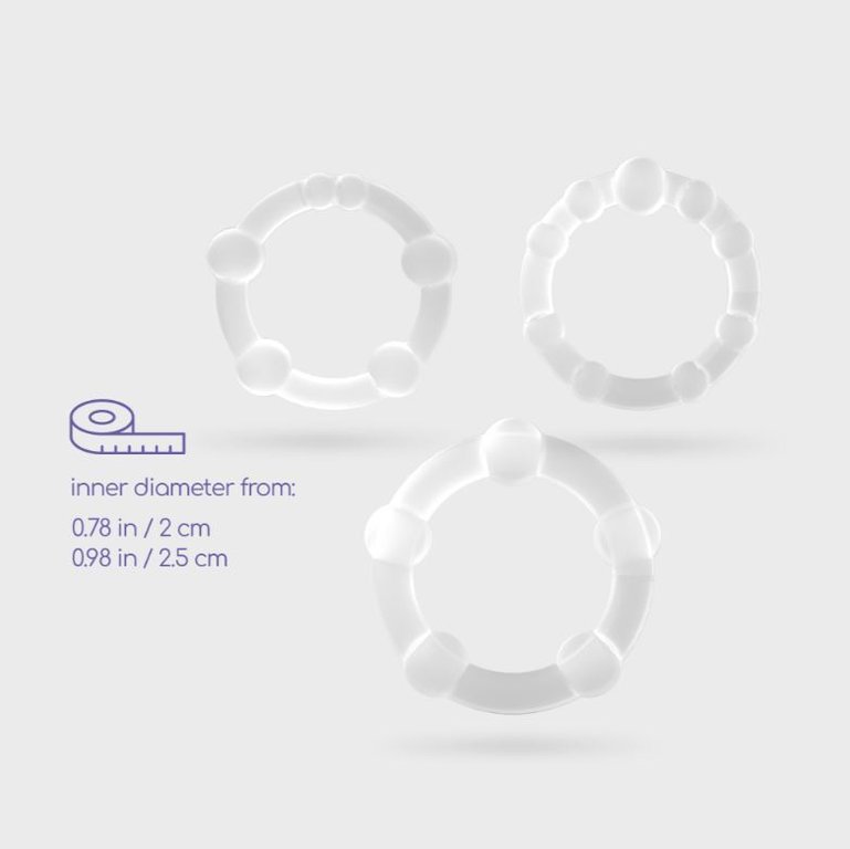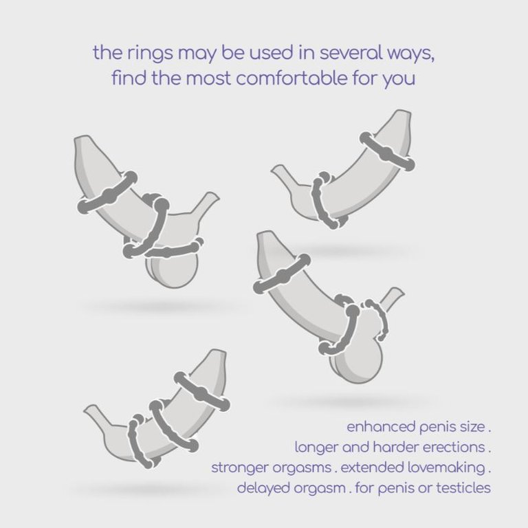 Renkailla voit tehostaa erektiota, nautintoa ja kestoa. Niin ainakin minusta vaikuttaa aika ilmiselvästi siltä että tässä ei paljoa menetä. Kolme nystyröityä rengasta lähtee tämän laatikon kanssa mukaan ja vain mielikuvitus on rajana mitä niillä saat aikaan. Tietenkin näidenkin kanssa pitää olla järki mukana eli ÄLÄ käytä renkaita koko ajan tai kovin pitkään.