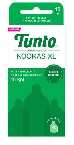 Laadukkaat Tunto Kookas XL kondomit isommassa koossa. Kondomi on sekä pidempi, että leveämpi, joten käyttömukavuus on parhaimmillaan. Väritön ja sileä lateksikondomi, joka on helppo rullata päälle.